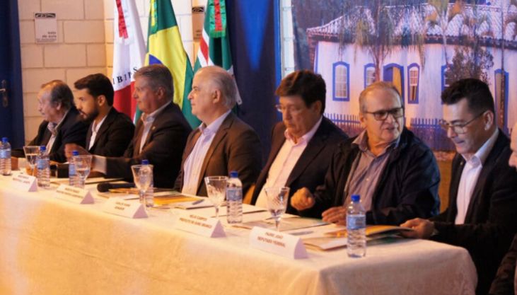 Autoridades presentes na mesa de honra que recebeu o ministro Márcio França.